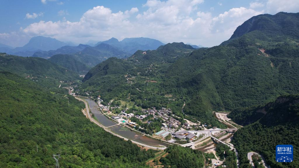 新华全媒+|嘉陵江畔千年银杏唤醒古村文旅新篇   这是7月15日拍摄的田河村古院落和银杏树(无人机照片)